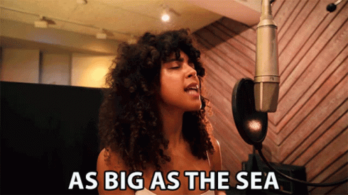 Arlissa passionately sings 'As Big As The Sea' into a microphone in a recording studio.