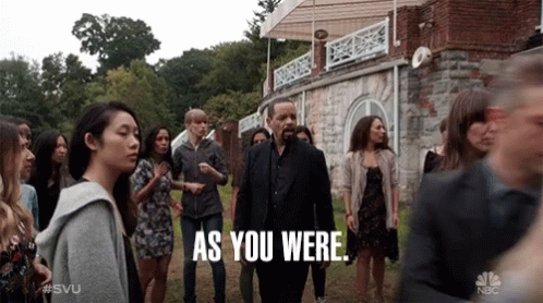 Ice T as Sergeant Odafin Tutuola tells a group of women "As You Were" amidst a commotion in Law & Order: SVU.