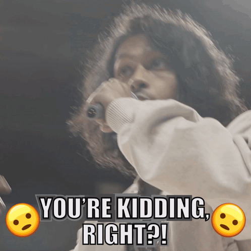 Ashwin Gane singing into a microphone with a skeptical expression, displaying 'You're Kidding, Right?!' caption.