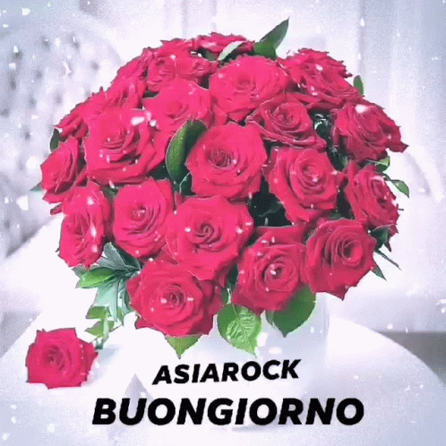 A beautiful bouquet of red roses with the greeting 'Asiarock Buongiorno'.