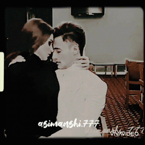Asim Riaz and Himanshi Khurana share a loving embrace in this romantic, vintage-style moment.