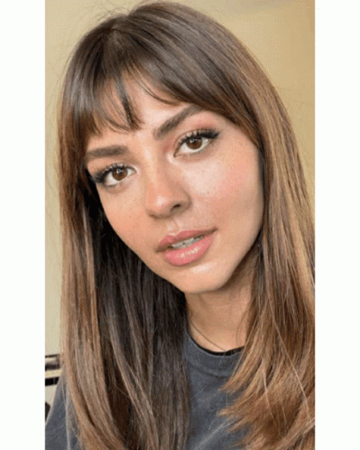 Aslihan Malbora or Hande Ercel in a captivating close-up portrait, featuring her long hair and fringe.