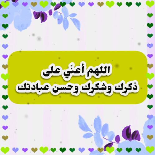 A beautiful Islamic prayer (dua) 'Oh Allah, help me to remember You, thank You, and worship You well' with animated hearts.