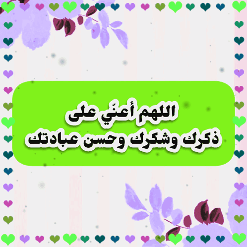An Islamic supplication in Arabic, 'O Allah, help me to remember You, to thank You, and to worship You well,' displayed on a green sign with decorative hearts.