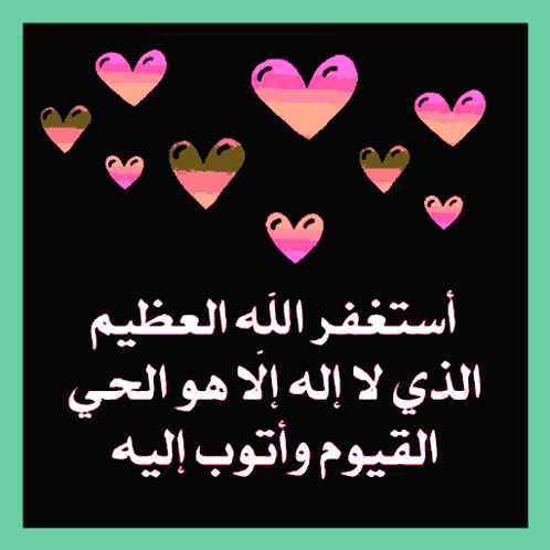 Animated pink hearts float on a black background with the Arabic prayer 'Astaghfirullah al-Azeem' displayed.