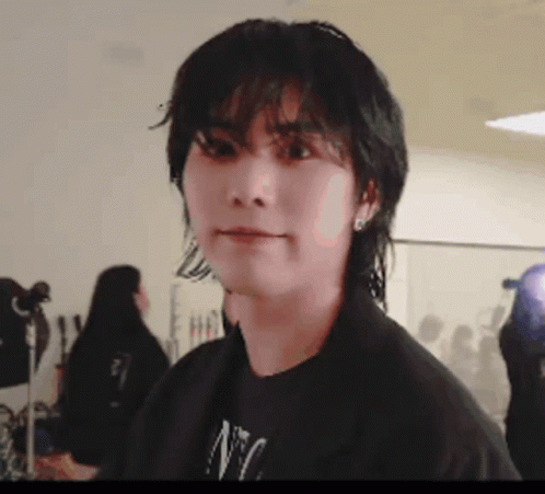 Astro's Rocky (Park Minhyuk) flashes a peace sign with a charming smile, showcasing his cute persona.