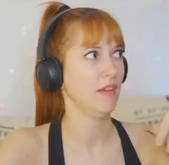 Daiana Hernandez, wearing headphones, reacts with a look of disgust and fear, covering her face.