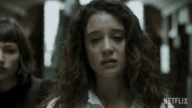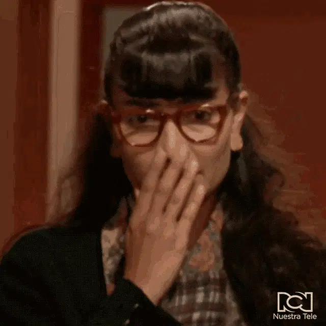 Victoria Volkova making a nervous face with the text 'Ataque de Nervios' (Nervous Breakdown) on screen.
