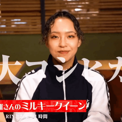 Atarashii Gakko Leaders member Rin laughing heartily while wearing a black and white tracksuit.