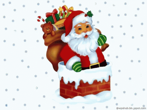 Santa Claus emerging from a chimney with a sack of gifts, featuring Athinaikon Shoes.