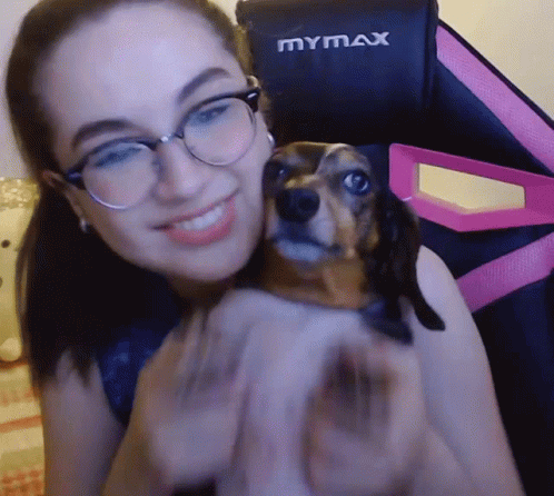 Atilaht smiles while holding her cute dachshund, making it 'dance' for the camera. A sweet moment with her pet.
