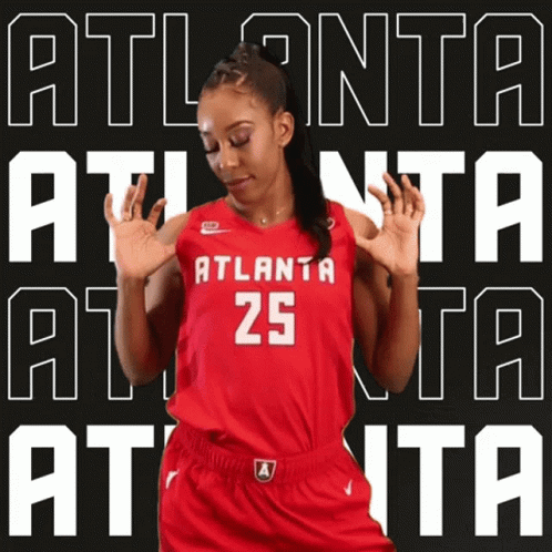 Monique Billings proudly poses in her red Atlanta Dream basketball jersey with number 25.