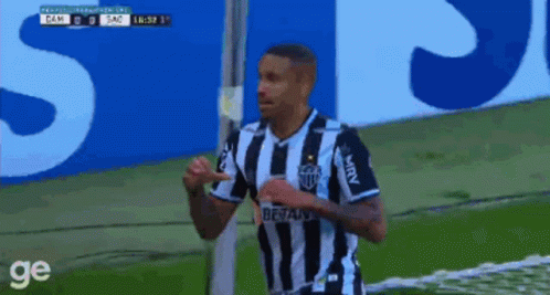 Atletico-MG player Jair celebrates a goal with teammates during a soccer match against São Paulo FC.