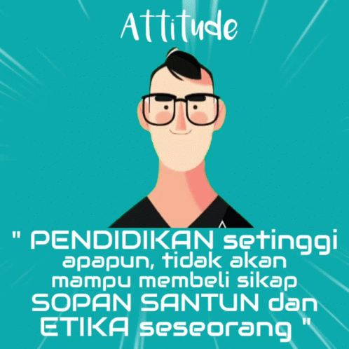 Animated character with glasses and a quote about education, politeness, and ethics.
