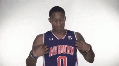 Horace Spencer proudly displays his Auburn Tigers basketball jersey, number 0, with a confident smile.