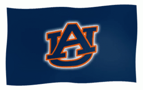 The Auburn University flag, featuring the iconic AU logo, waves proudly against a clear background.