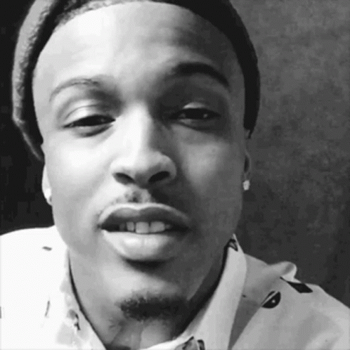 August Alsina smiles warmly in a black and white close-up, wearing a beanie and collared shirt.