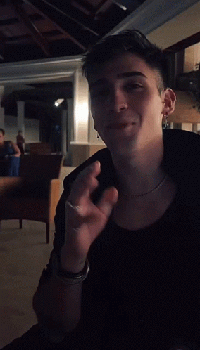 Augusto Gimenez reacts with embarrassment, covering his face with his hands, wearing rings and a bracelet.