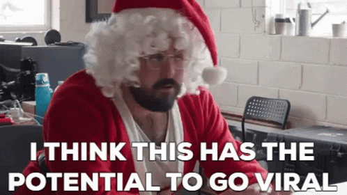Zach Ruane from Aunty Donna, dressed as Santa, declares "I THINK THIS HAS THE POTENTIAL TO GO VIRAL."
