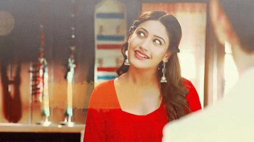 Annika from Ishqbaaaz smiles and asks 'aur bhi kuch hai kya?' (Is there more?) in a red dress.