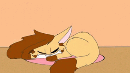 Ava G, a cartoon fox character from Ava G Animations, wakes up abruptly from sleep on a pink mat, looking startled.