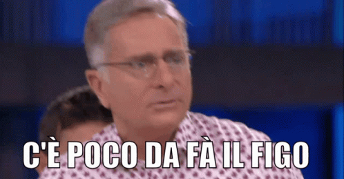 Paolo Bonolis from Avanti Un Altro delivers the line 'C'è poco da fa il figo' with a serious expression.