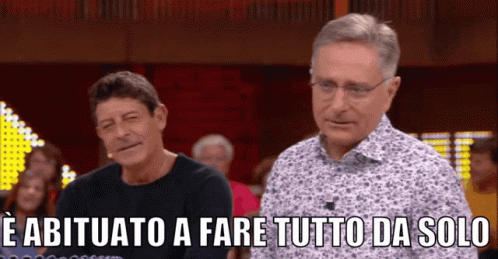 Paolo Bonolis on the Italian game show Avanti Un Altro with the caption 'Abituato a fare tutto da solo'.