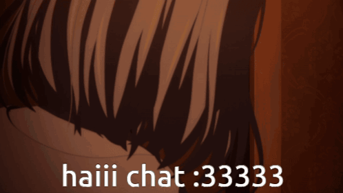 Anime character Mutsumi Wakaba from Ave Mujica appears with 'haiii chat :33333' text.