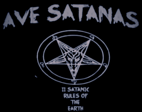 A stark black background displays 'AVE SATANAS' and 'II SATANIC RULES OF THE EARTH' with a central pentagram.