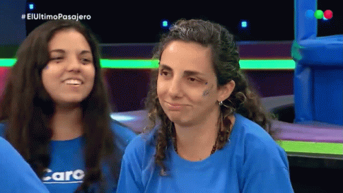 Caro looks embarrassed on the Argentine TV show 'El Ultimo Pasajero' alongside another woman.