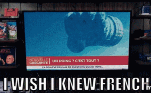 Avgn Joueur Du Grenier reacts to a French news segment about a fist, expressing 'I wish I knew French' in confusion.