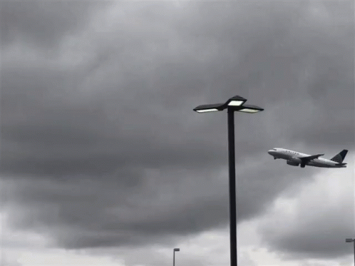 A Delta Airlines plane takes off against a dramatic cloudy sky, captured in striking black and white.