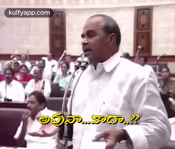 YS Rajasekhara Reddy speaking into a microphone in an assembly, with the Telugu caption "Avuna Kaadha".