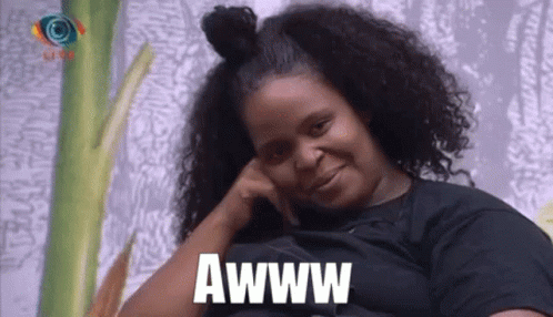 Yoli reacting with an 'Awww' expression, sitting on a couch with her hand on her chin.
