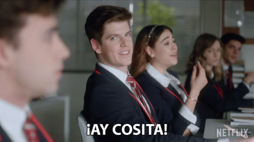 Lucrecia Montesinos Hendrich (Danna Paola) reacts with 'Ay Cosita' in a scene from the Netflix series Elite.