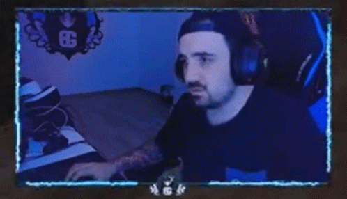 Bers Gamer reacts with fright, clutching his chest in a moment of shock while gaming.