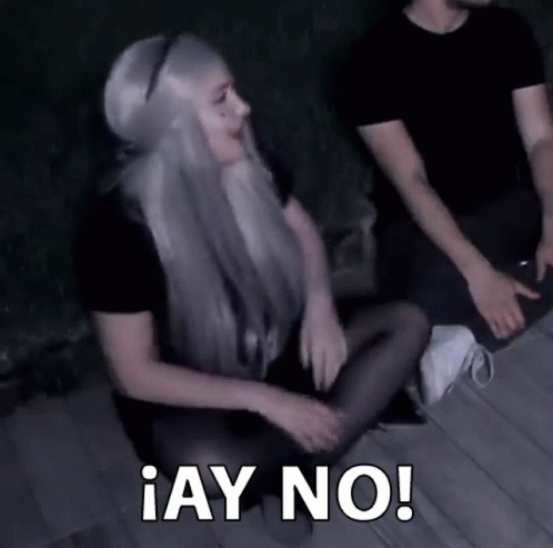 Raiza Revelles reacts with '¡Ay No!' (Oh No!) while sitting on the ground, expressing fear or horror.