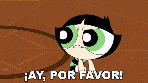 Buttercup from The Powerpuff Girls reacts with a shocked '¡Ay, por favor!' and a firm '¡No!' in Spanish.