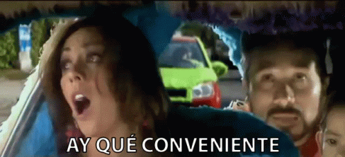 Federica Peluche, played by Consuelo Duval, reacts with 'Ay Qué Conveniente' while in a car.