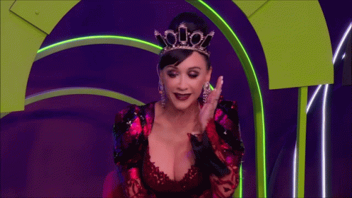 Sasana Zabaleta exclaims '¡Ay qué pena!' on stage, wearing a crown and elaborate dress.