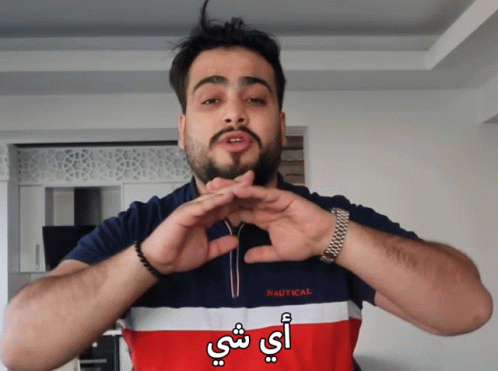 Mohamad Gowani gestures with hands, saying 'Anything' in Arabic, expressing a casual attitude.