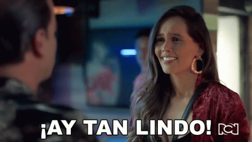 Milagros (Alejandra Avila) from Pa Quererte smiles sweetly, exclaiming '¡Ay Tan Lindo!' in a heartwarming moment.