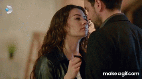 Burcu Ozberk and Çağlar Ertuğrul share a passionate kiss as Ayker in Afili Aşk.