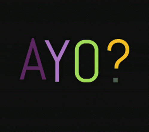 Animated text featuring 'AYO' in purple, green, and yellow, with 'KINPLANET' below on a black background.