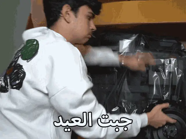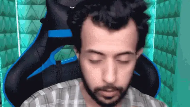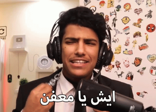 Drkaalo, a gamer, reacts with a funny expression and the phrase 'ايش يامعفن' while wearing headphones.