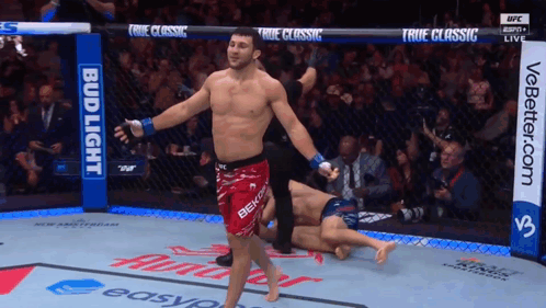 a man in a boxing ring with a banner for bud light