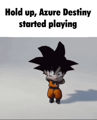 A chibi Goku-like character dances as the text 'Hold up, Azure Destiny started playing' appears.