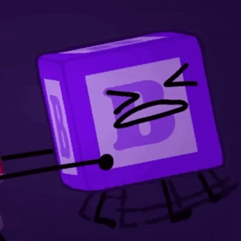 Purple block character B Block from Animatic Battle appears distressed and crying with a wide-open mouth.