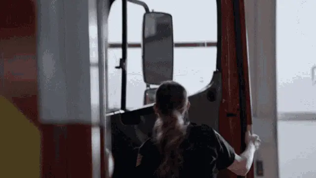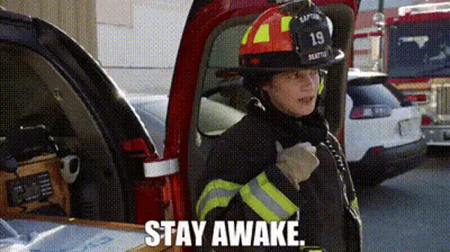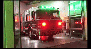 A B4 Talcahuano fire truck with flashing green and red lights inside a fire station garage.