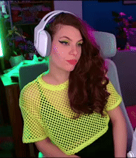 B4jeczk4 Bajeczka, a streamer, sits wearing white headphones and a neon yellow fishnet top, adjusting her outfit.